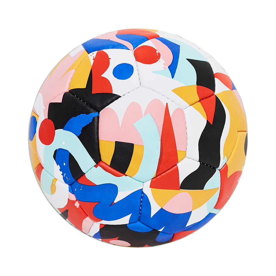 Ballon de football Taille 5 qualité match. Peint et cousu à la main en Inde, dans une usine engagée pour le commerce équitable et labellisée Fairtrade (lire la partie "Le Pundjab, berceau historique du ballon de sport"). Produit sans phtalates, encres EN-71. Design réalisé par les artistes nantais The Feebles. Une partie des bénéfices est reversée à la fondation Hôpitaux de Paris-Hôpitaux de France qui oeuvre à améliorer le quotidien du personnel soignant et des patients, des patients hospitalisés et de leur entourage.